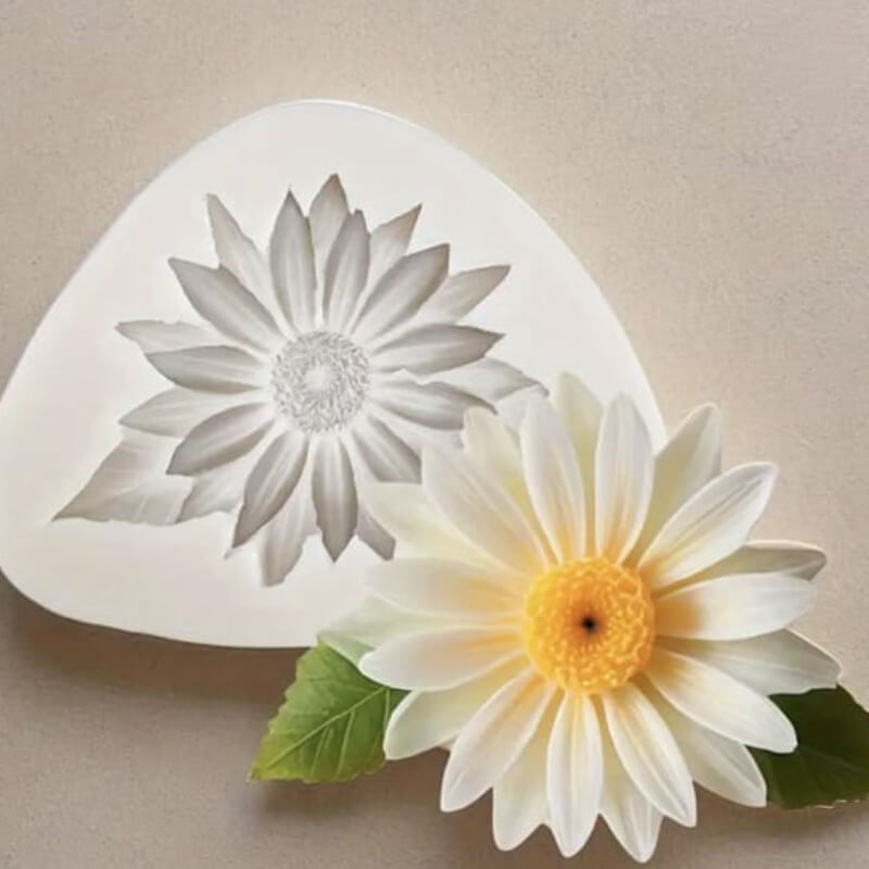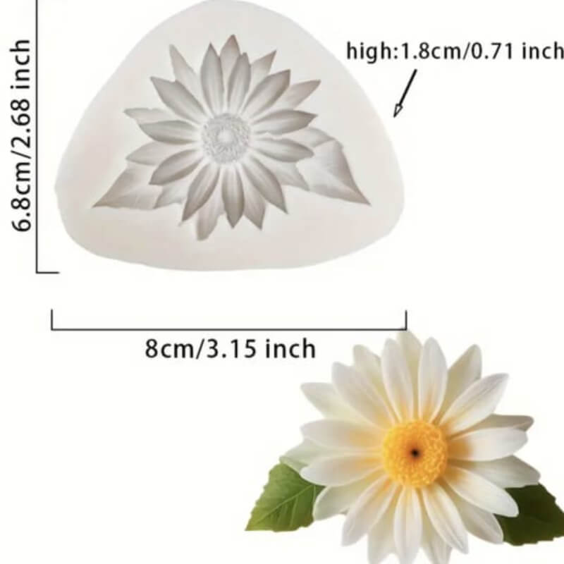 Molde de silicona Margarita con hojas para uso en resina, yeso, jabón, cemento, porcelana fría.